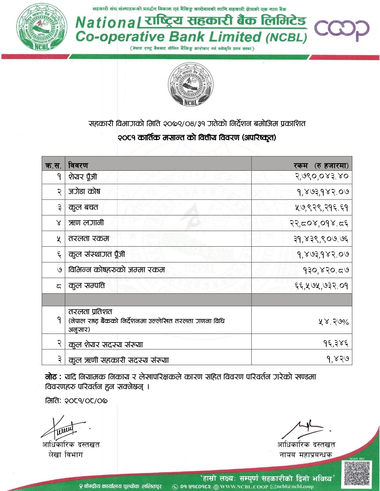 यस बैंकको २०८१ कार्तिक मसान्तको प्रकाशित वित्तीय विवरणहरू (अपरिष्कृत)