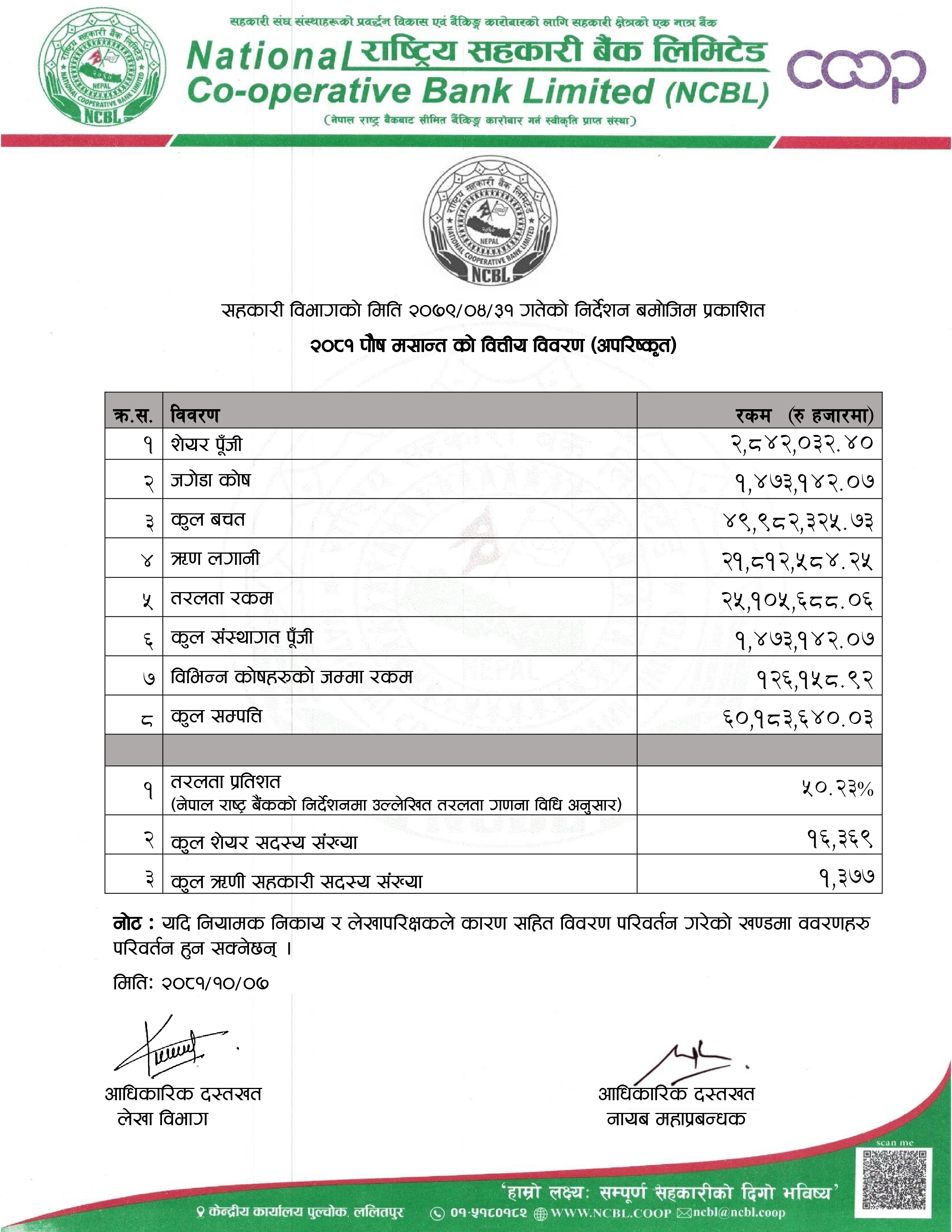 यस बैंकको २०८१ पौष मसान्तको प्रकाशित वित्तीय विवरणहरू (अपरिष्कृत)