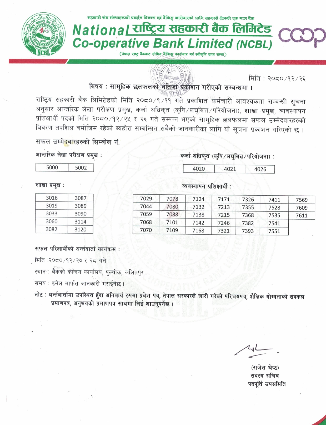 अन्तिम छनौटको नतिजा प्रकाशन गरिएको सम्बन्धी सूचना