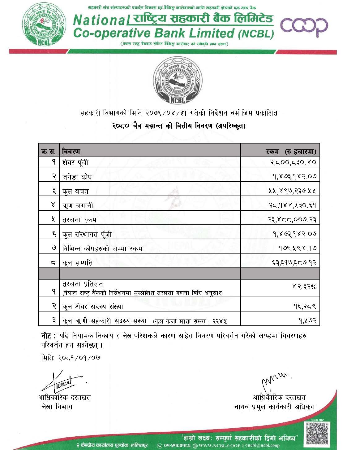 २०८० चैत्र मसान्तको वित्तीय विवरण (अपरिष्कृत)