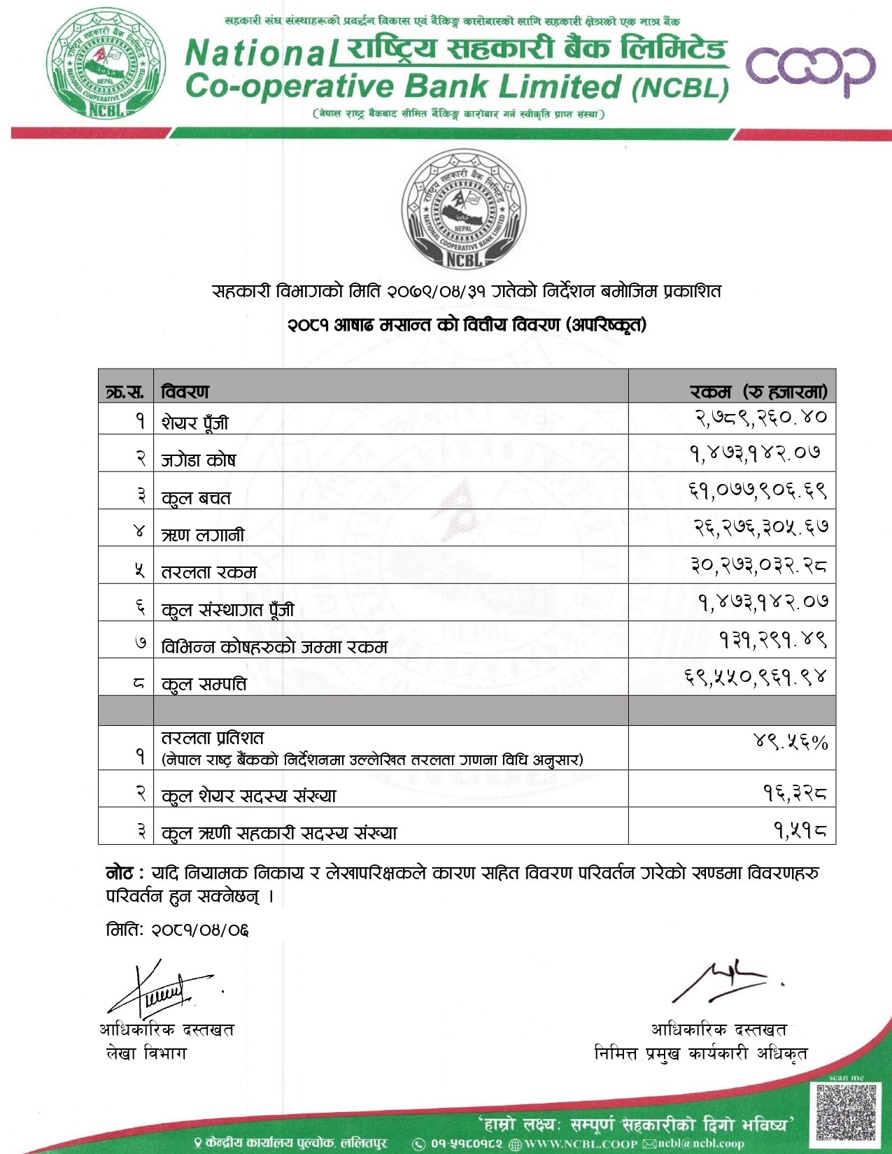 २०८१ श्रावण मसान्तको वित्तीय विवरण (अपरिष्कृत)