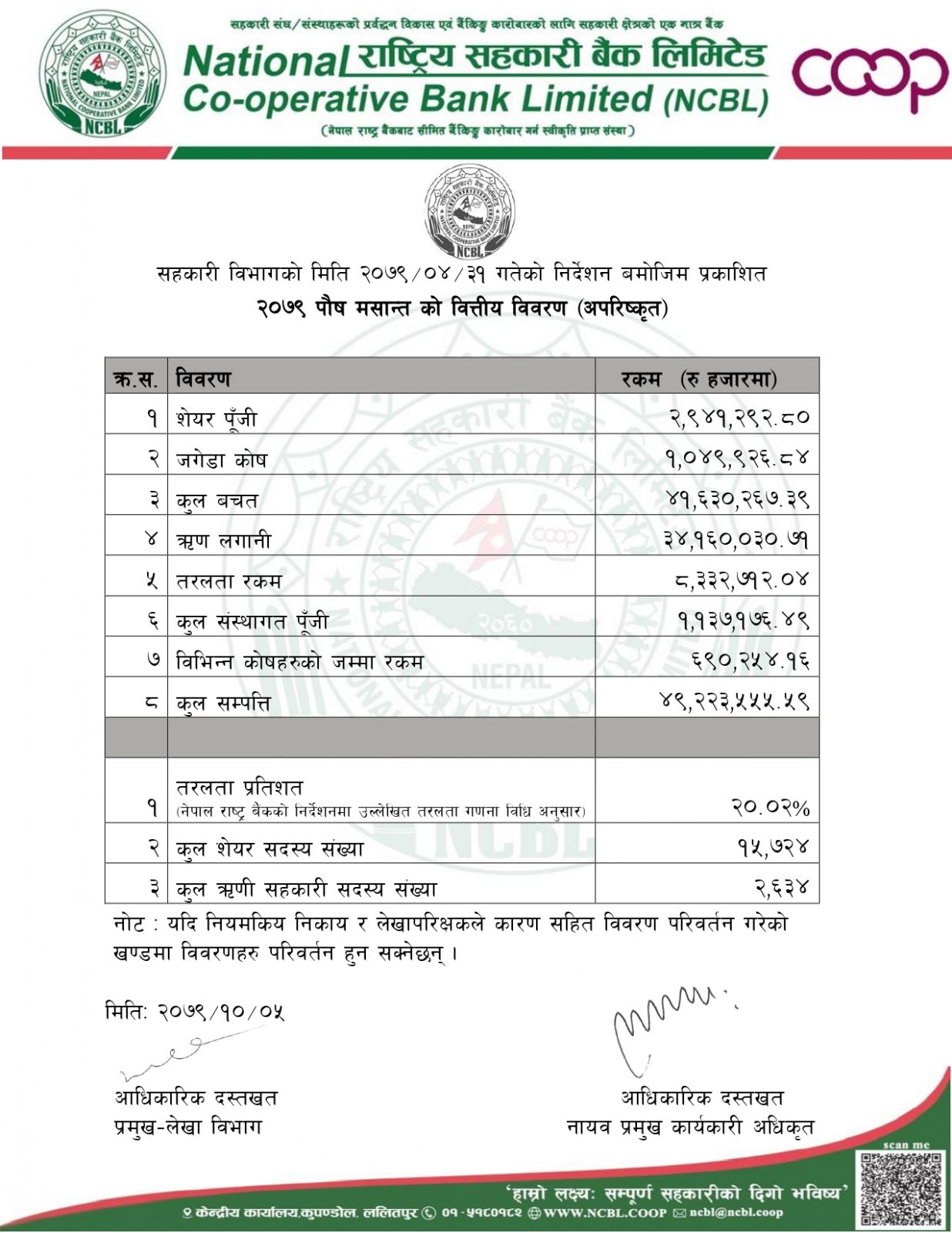 Financial Statement (Unaudited) for the month of Poush 2079"