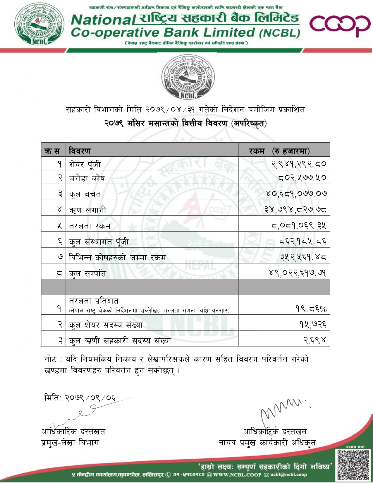 Financial Statement (Unaudited) for the month of Mangsir 2079