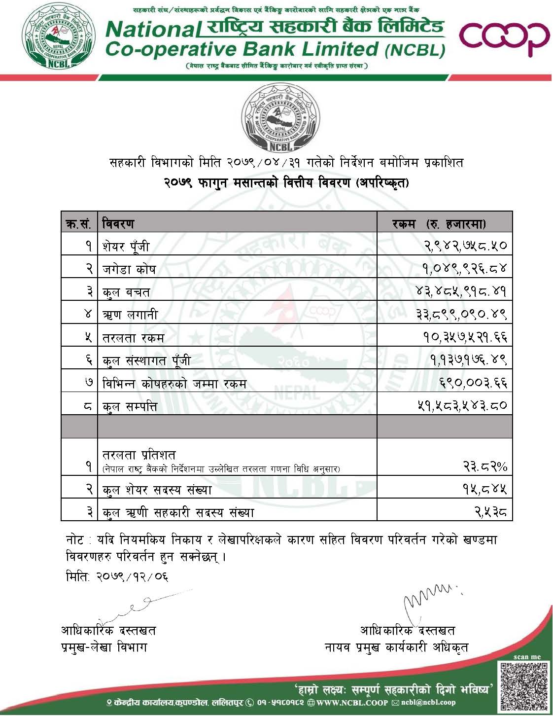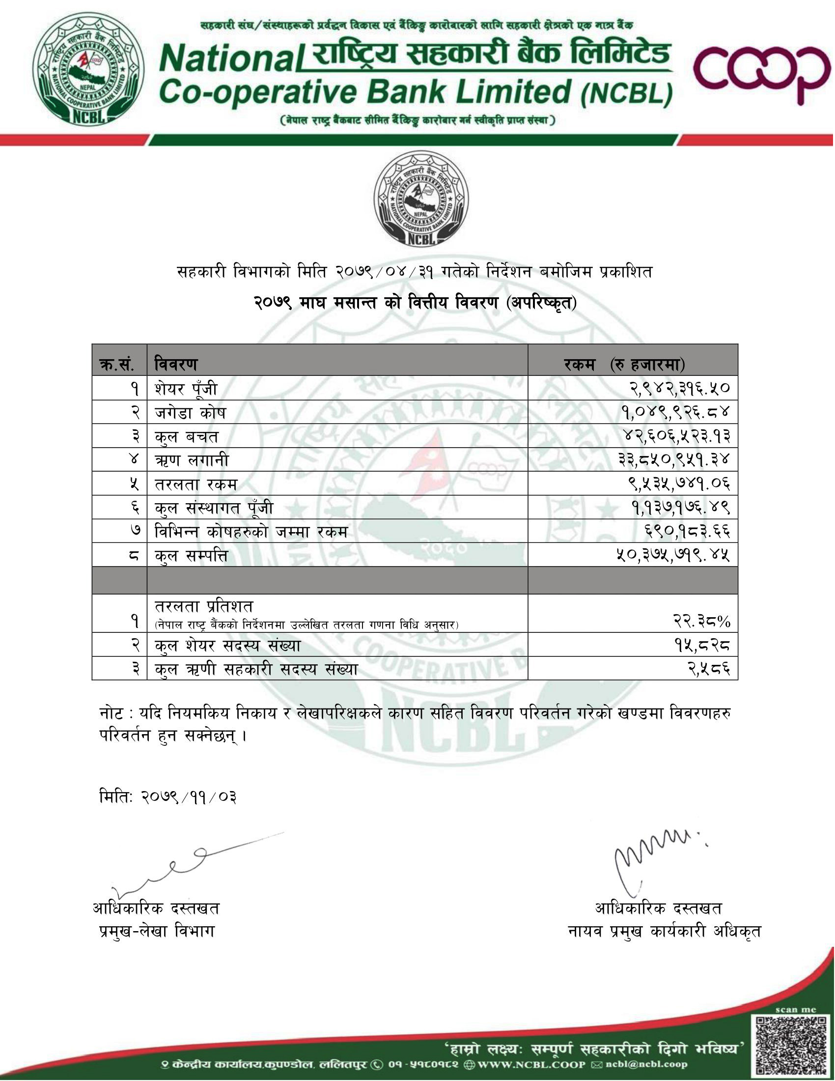 Financial Statement for the Month of Magh 2079 (Unaudited)