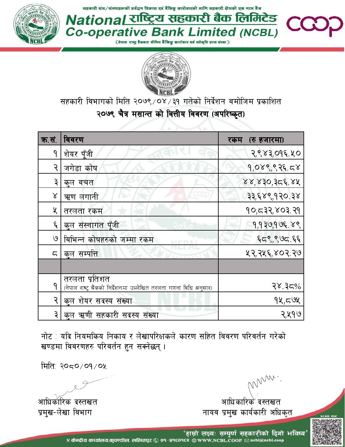 Financial Statement (Unaudited) for the month of Chaitra 2079