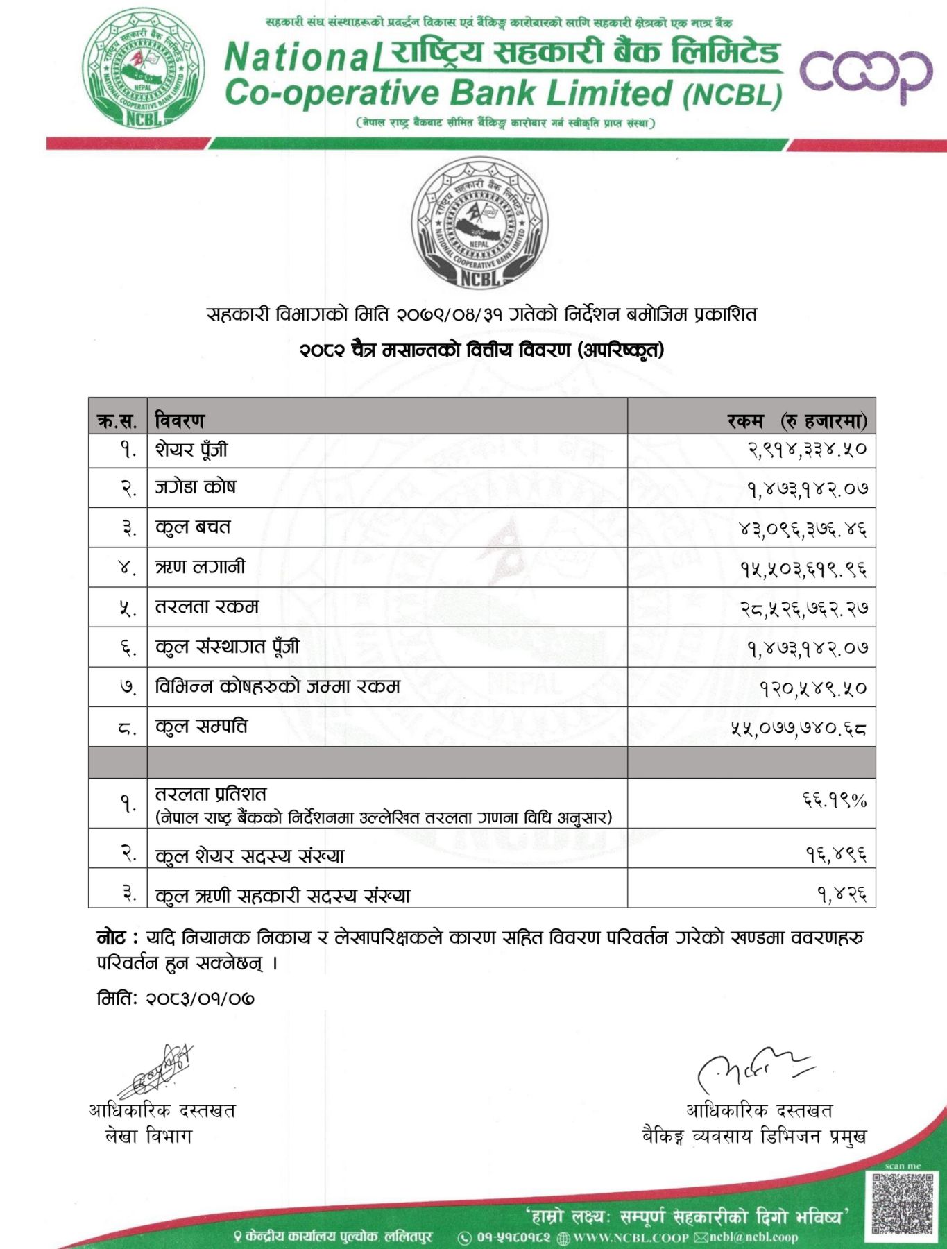 NCBL deposit products exclusively designed for them. These products can help member cooperatives to become financially secure and provide a safety net in case of an emergency in future..